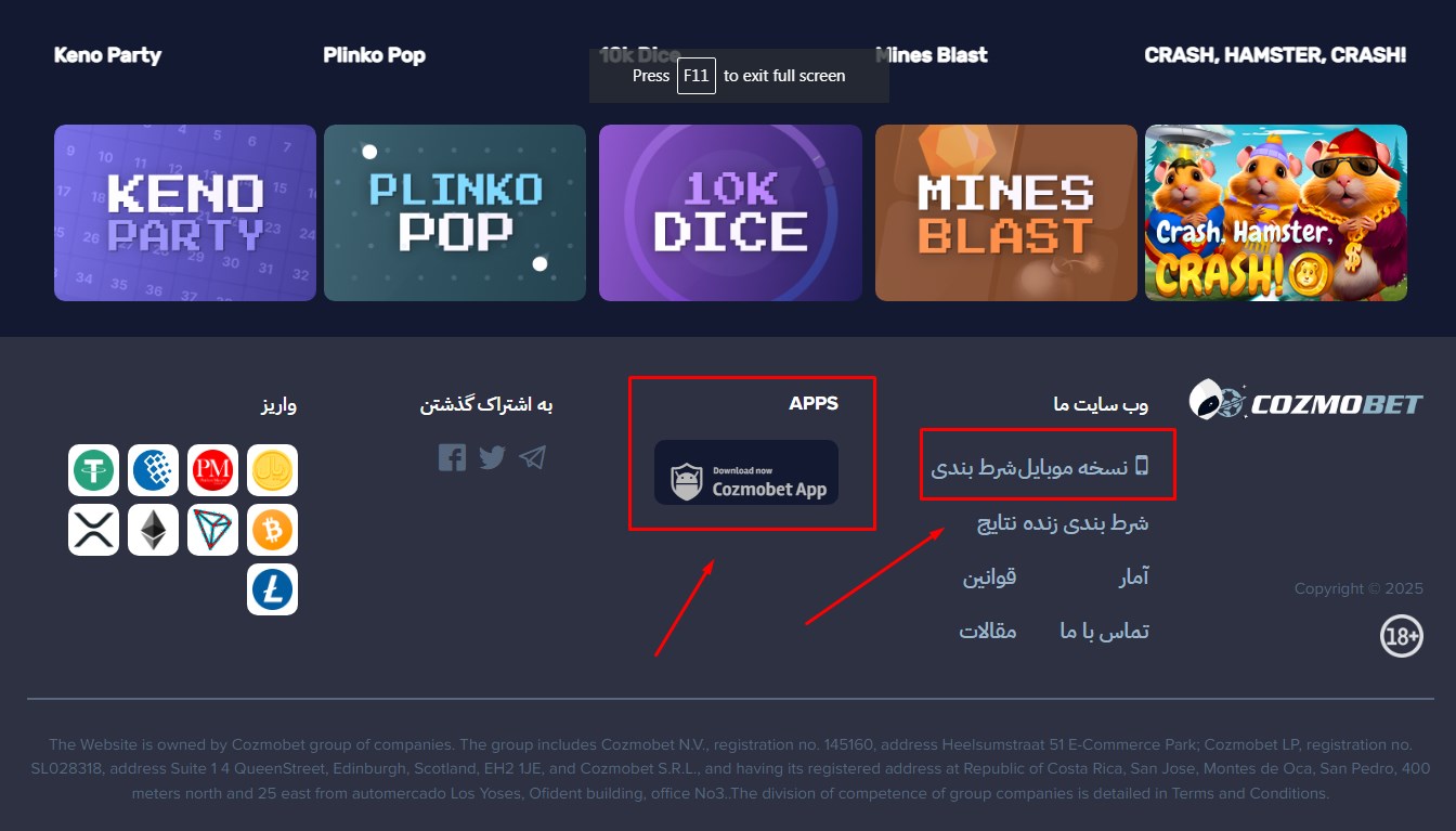بازی های جذاب کازینویی کوزمو بت CozmoBet